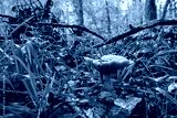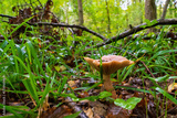 Parasola plicatilis mushroom in the autumn forest