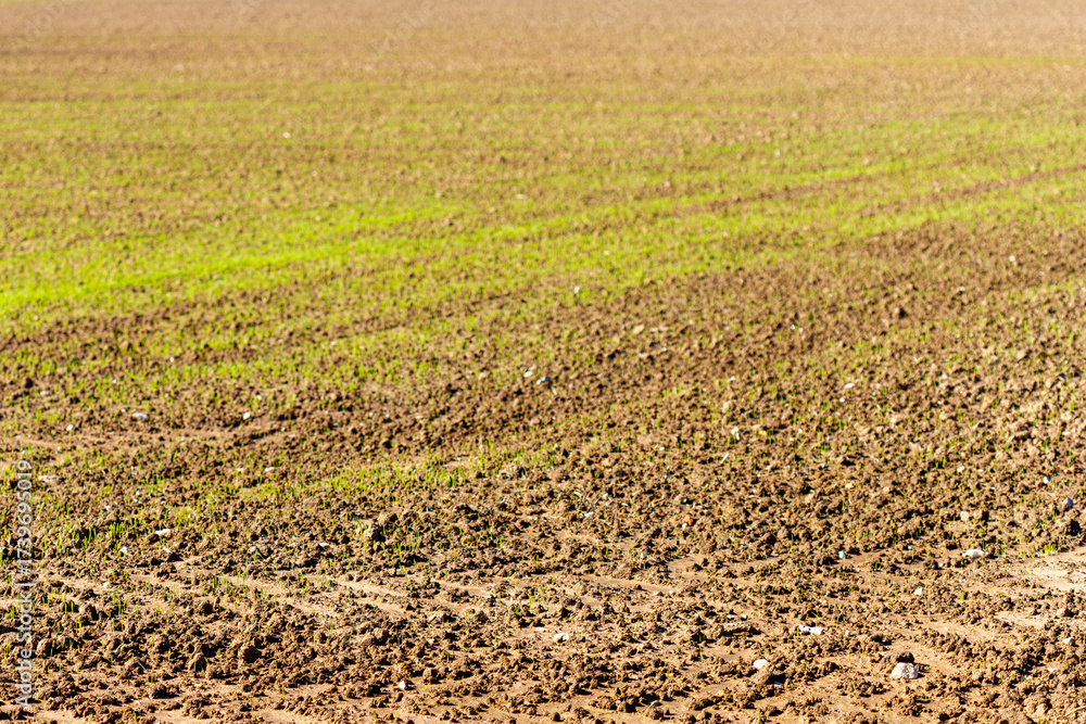 Newly Planted Field with Green Shoots