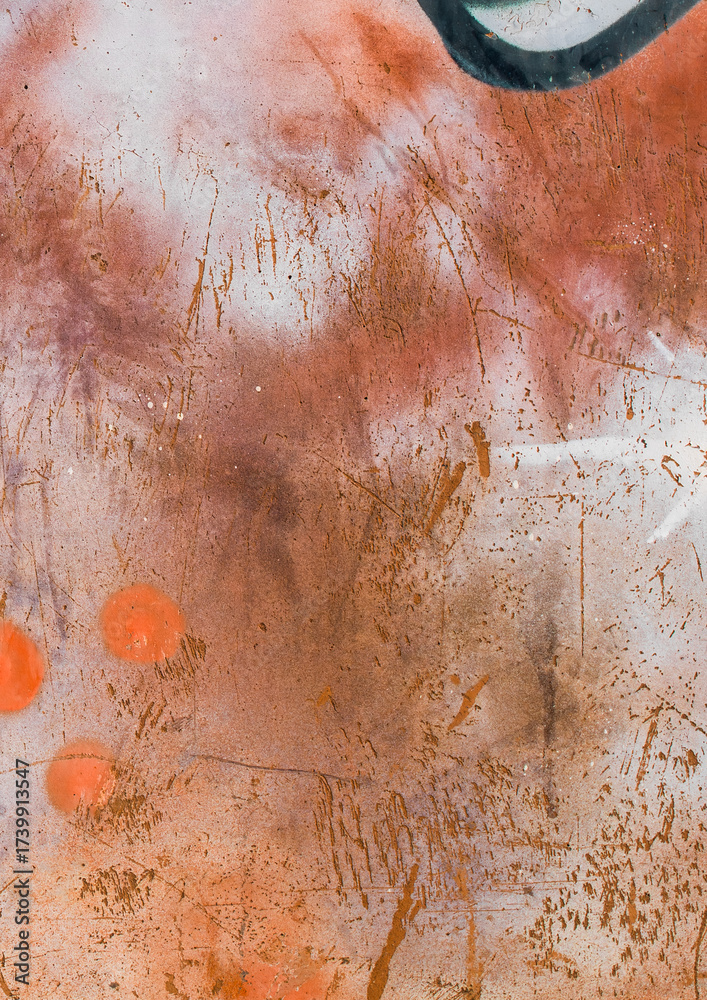 old graffiti wall with faded paint, deep scratches, and visible signs of wear and tear. The surface shows layers of spray paint, peeling texture, and rough markings, creating a gritty urban background