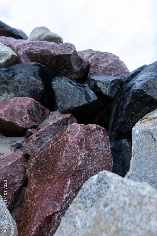 Natural large colorful stones on the beach and geological formations