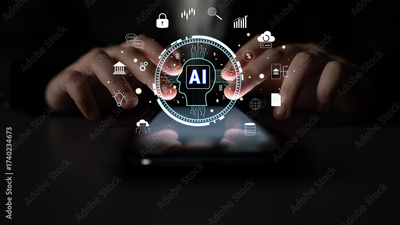 The role of AI in FinTech and modern business. A concept of using artificial intelligence for banking, investment, and data analysis solutions. Motif