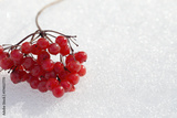 Red viburnum lies on the snow on a clear day. Background for wallpaper.