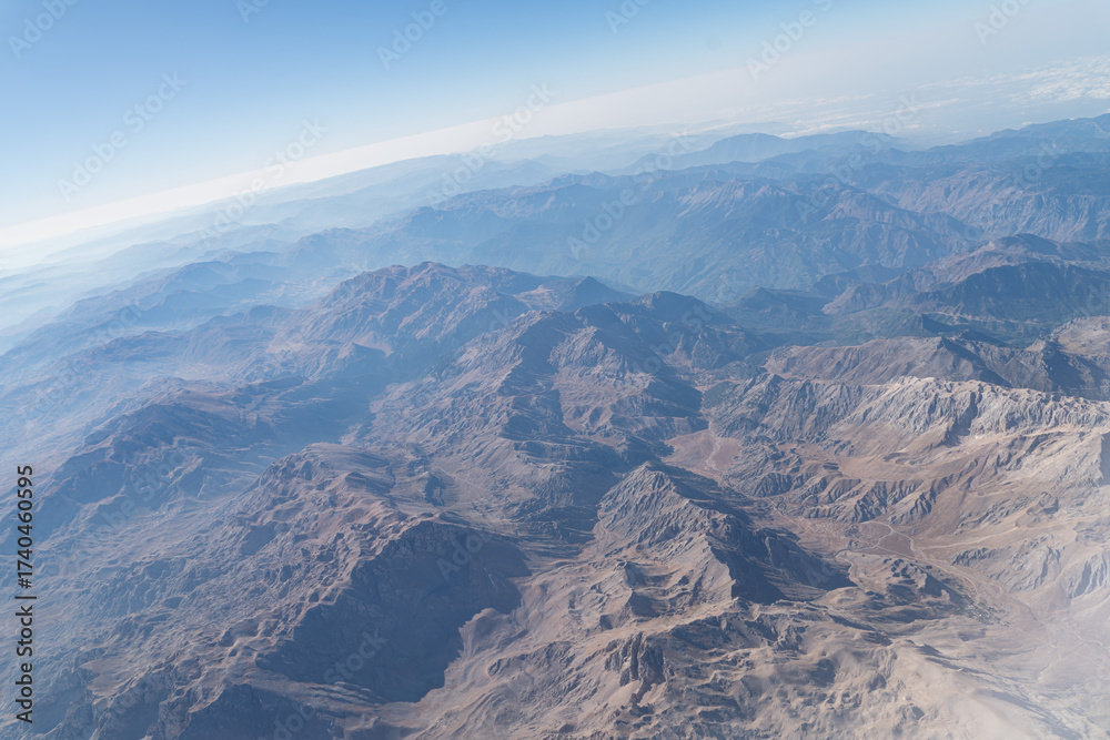 Aerial View of Rugged Desert Mountain Range with Dramatic Peaks and Valleys