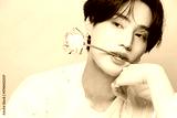 ピンク背景でアジアのキュートな若い男性のポートレート