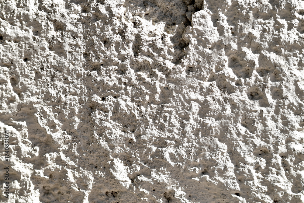 White Rough Plaster Wall. Textured white plaster wall surface with rough structure, grunge background for design.