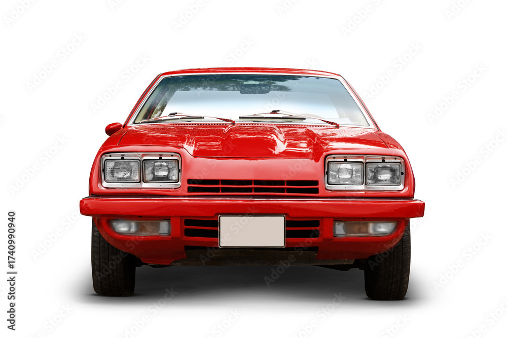 Front view of a classic car with square shaped headlights on a transparent background
