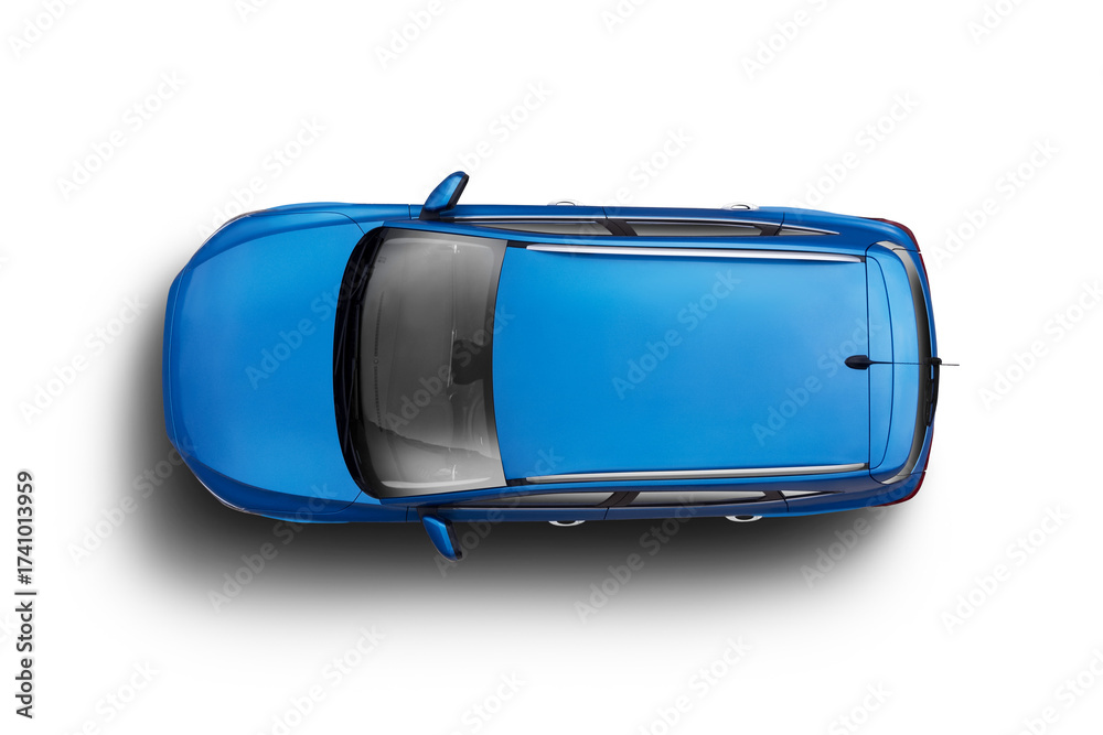 Blue colored modern b-suv Top View on Transparent Background