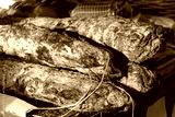 Filetto erborinato Italian beef fillet with blue cheese erborinato, with spicy, creamy flavour and possibly sweet caramel notes due to type of cheese and terroir on market in Gorgonzola, Italy