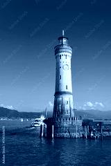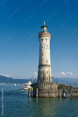 Leuchtturm aus dem Jahr 1856 in der Hafeneinfahrt der Bayerischen Stadt Lindau am Bodensee in Deutschland