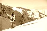 Active Sportswoman Taking Self-Portrait Against Snowy Mountain Backdrop
