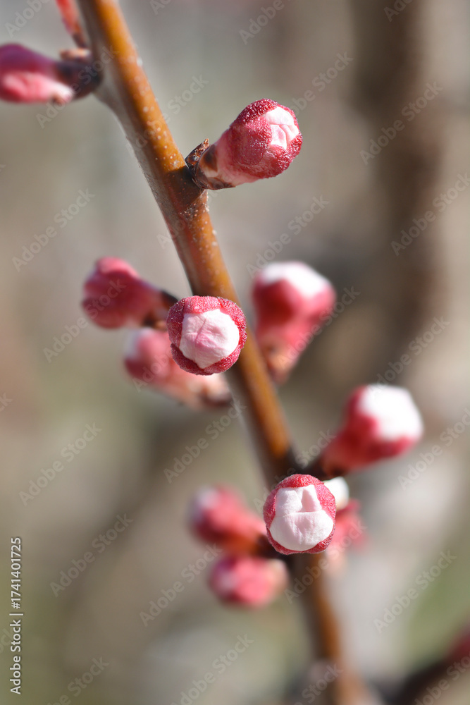Apricot tree branch with flower buds - Latin name - Prunus armeniaca Albicocco Vitillo