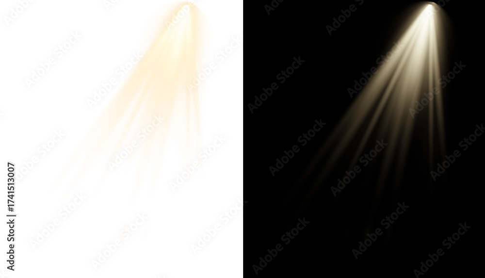Stylized golden spotlight beam PNG. Graphic stage light effect.