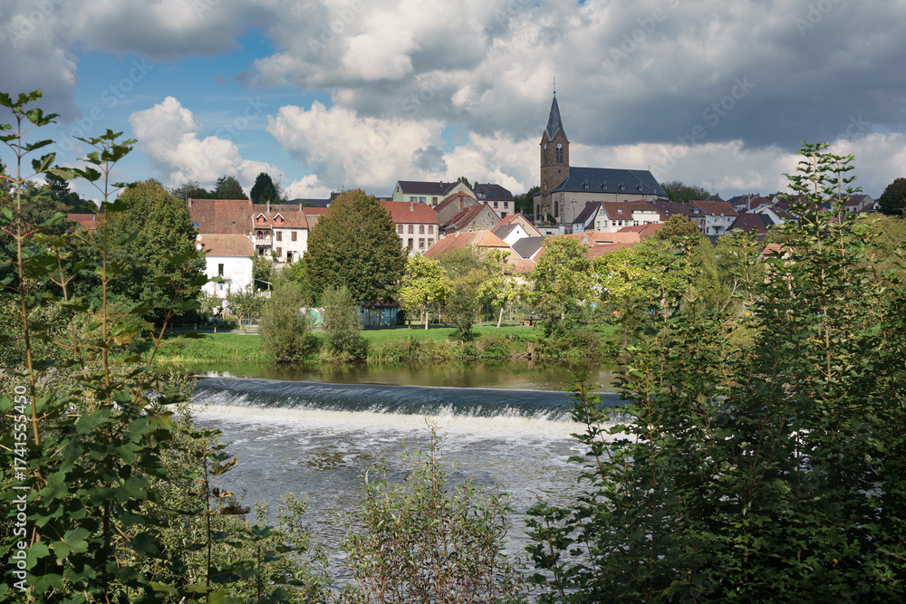 Village avec vue sur la rivière Sarre