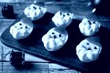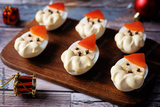 Boiled eggs with pepper and mayonnaise sauce in the form of Santa Claus for Christmas holidays