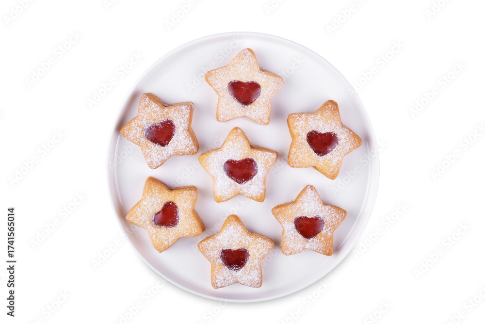 Linzer cookies in the form of star for Christmas holidays on a white isolated background
