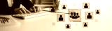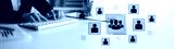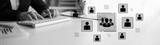 Concept of human resources and organizational structure. A professional team is shown within a corporate network, representing management, leadership, and collaboration. Fermion