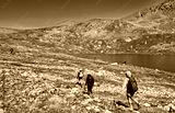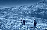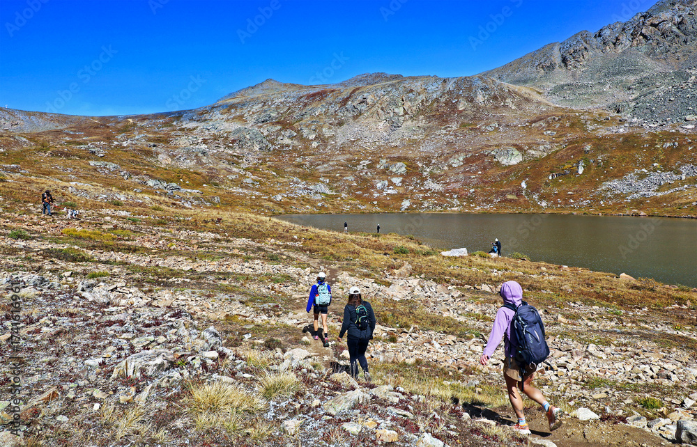Hikers arrive at Independence Lake at 12,000 feet along Colorado's Lost Man Trail near Aspen