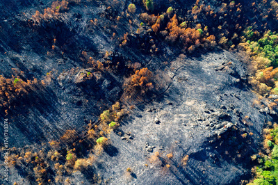 A Top Down Aerial View of a Burned Forest at Sunset The Concept of a Tragic Beauty