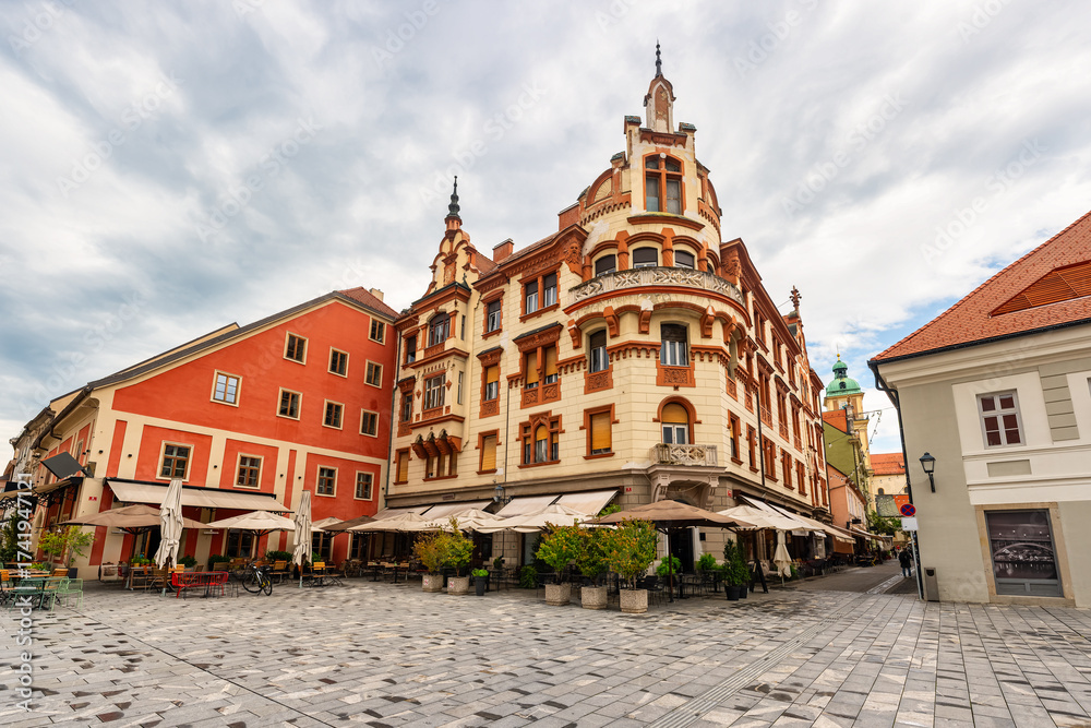 Picturesque buildings on the main beach of the city of Maribor, Slovenia.