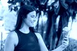 Young pretty Brazilian woman with a cornet ice cream at outdoors with happy expression