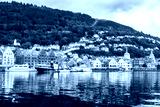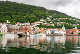 Bergen Bryggen waterfront with traditional buildings reflecting in the Vågen harbor