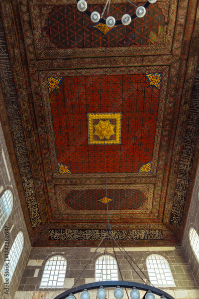 Ceiling with geometric patterns and calligraphies in great Mosque of Diyarbakir