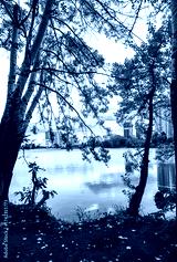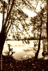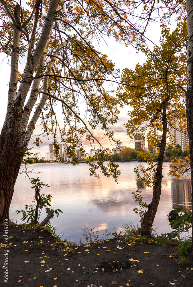 Late October evening in the city by the lake, Kyiv, Ukraine.