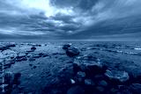 The Gulf of Finland in the eastern part of the Baltic Sea, washes the coasts of Finland, Russia and Estonia. Round granite stones on the sea. Dramatic sky before a thunderstorm.Storm.