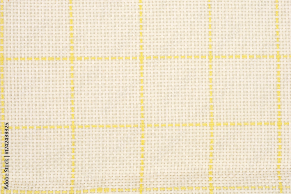 A close-up shot of a light beige woven fabric or canvas texture overlayed with a regular yellow grid pattern