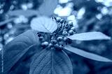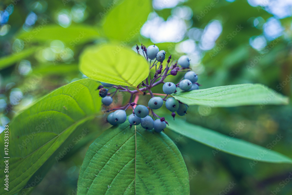 A cluster of blue berries on a leaf