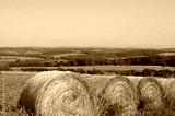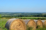 Hay bales in the field on the farms and hills of upstate New York in summer
