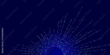 Binary code streams radiate from center as dotted lines. Digital data flow graphic for tech, AI or network concepts. Abstract visualization of information transfer or system expansion.