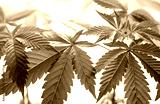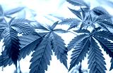 Close up of cannabis marijuana leaves on white background