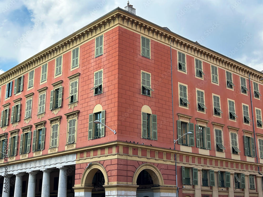 Architecture of buildings on the Place Massena. Close-up. Nice. France.
