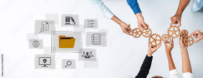 Concept of a document management system for corporate file archiving. This digital platform provides secure data storage and organization for easy information retrieval. Fermion