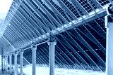 Automatic sun tracking system for modern Solar panel support structure with metal beams and mounting bracket for motor
