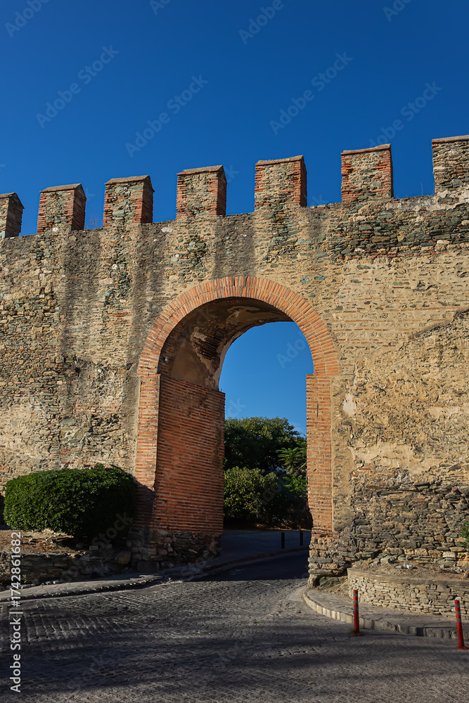Detail from the historic walls surrounding Thessaloniki, Greece.