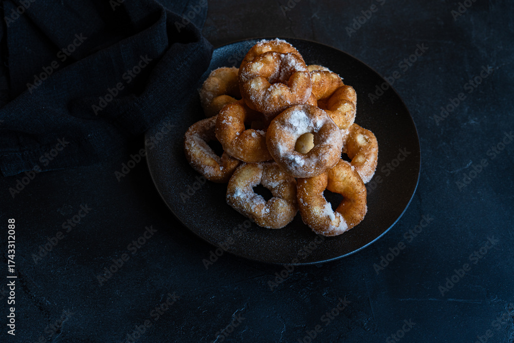 just baked homemade donuts with sugar powder