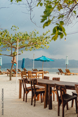 Beachfront Restaurant Dining Tables and Loungers, Gili Air, Indonesia