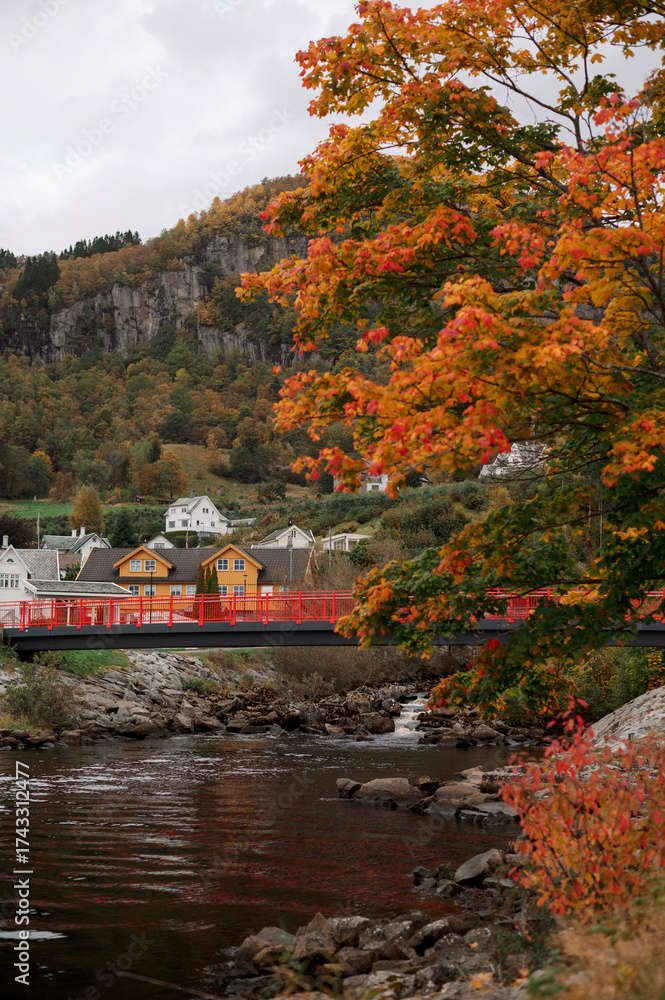 Autumn Landscape with River and Colorful Trees