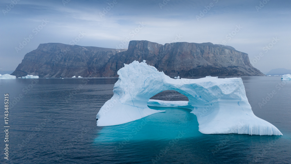 defaultHuge icebergs floating in the sea in a fjord off the coast of Greenland. Floating icebergs, global warming, and climate change. Aerial view of the ice. Summer time, popular tourist destination.