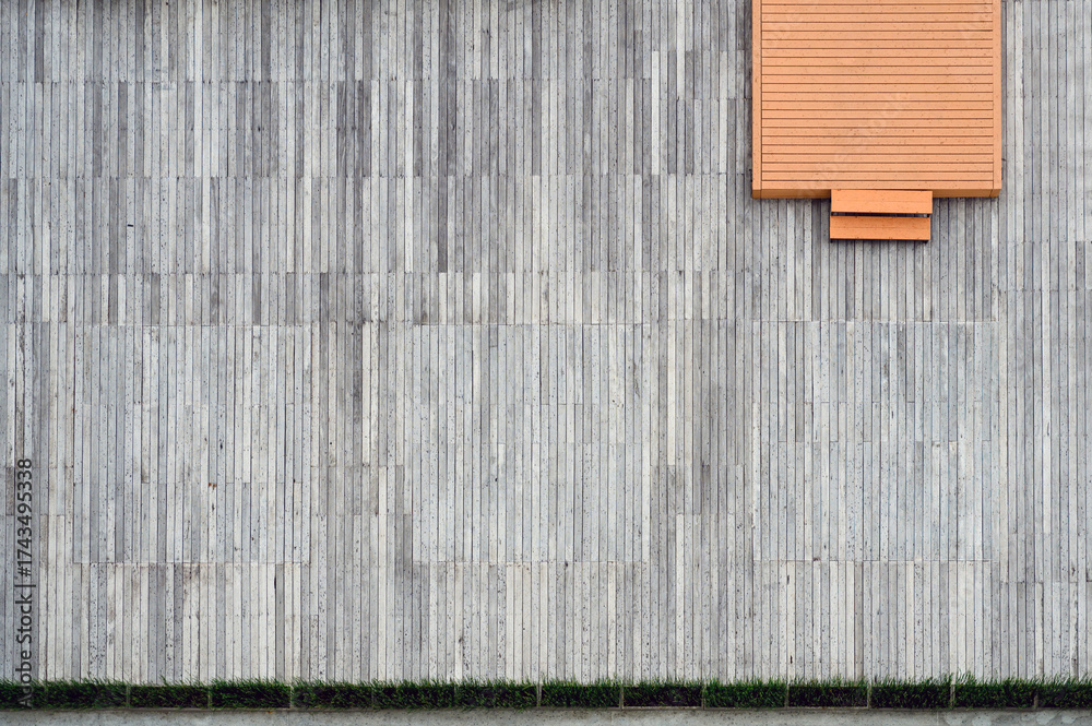 Top view of Interior design of empty outdoor wooden balcony. wood plank line background. wood pattern wall background. copy space.