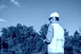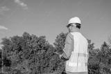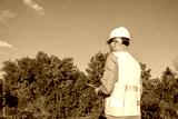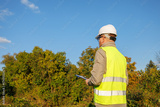Male engineer inspects the condition of a new construction site. Work forestry inspector, environmental control. Ecologist conducts environmental monitoring soil analysis.