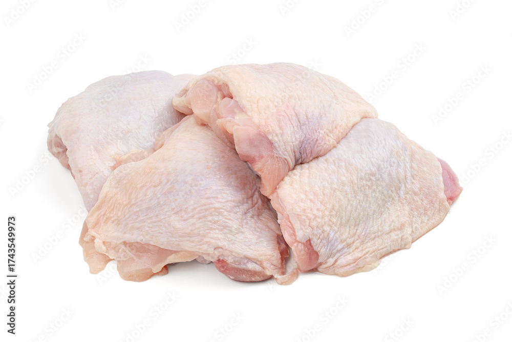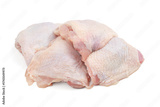 Raw chicken quarters isolated on white background. Raw fresh chicken meat.