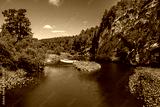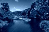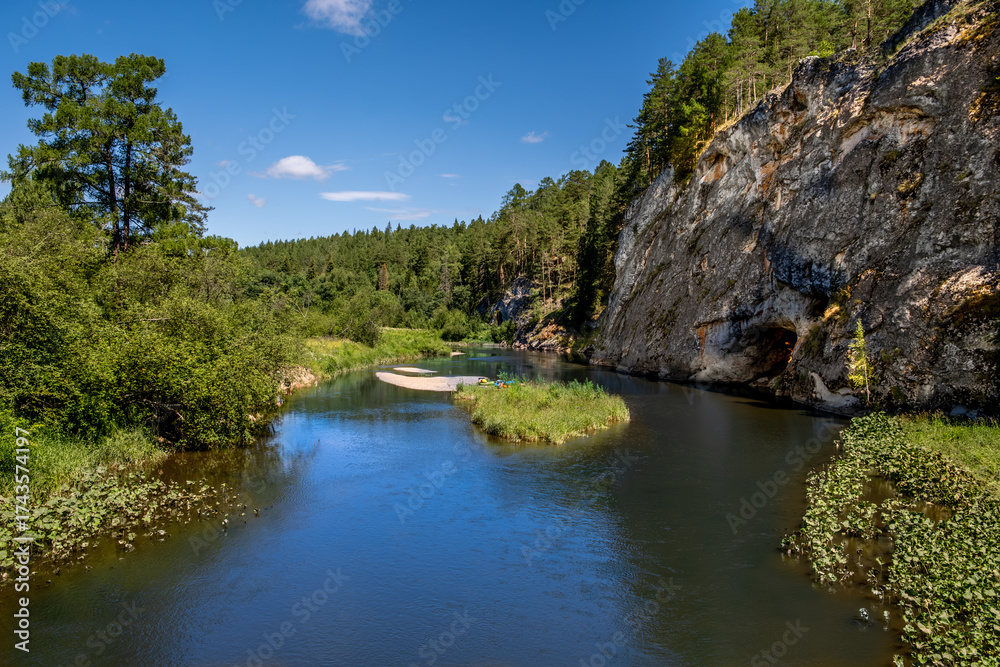 Pine forest on top of a cliff on a summer day.