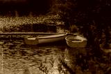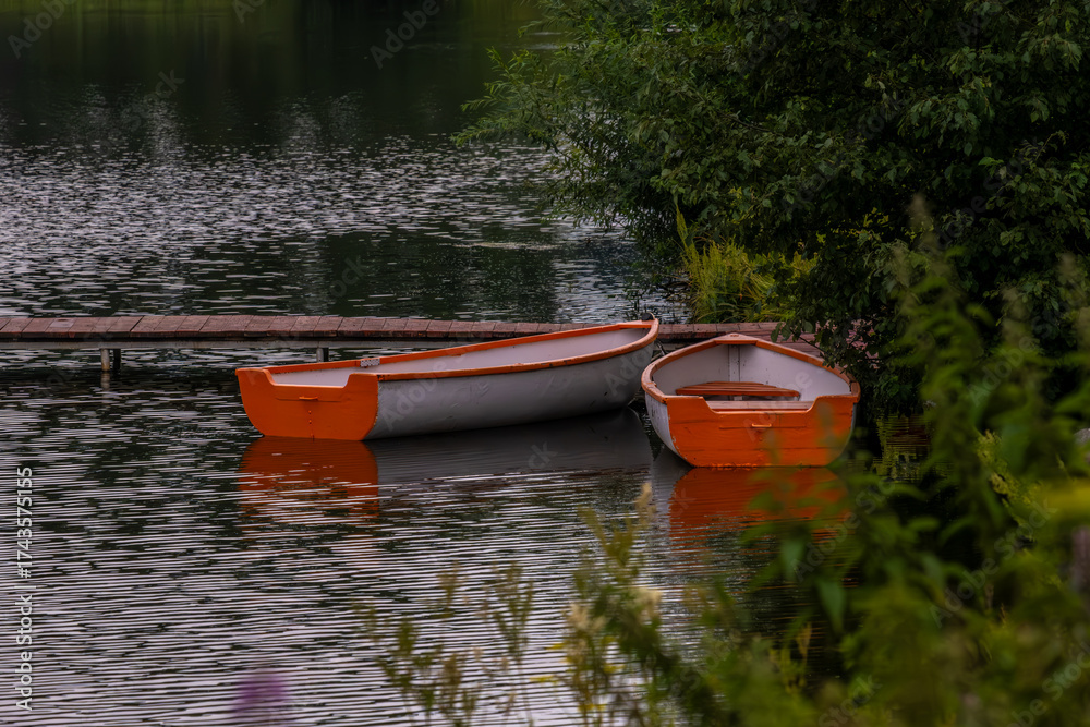 Two boats near the pier on the river on a summer day.