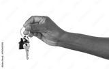 Hand holding a key to a house or an apartament isolated on white or transparent background