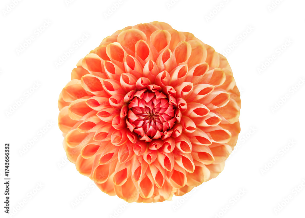 close up of red dahlia flower isolated on transparent background, top view