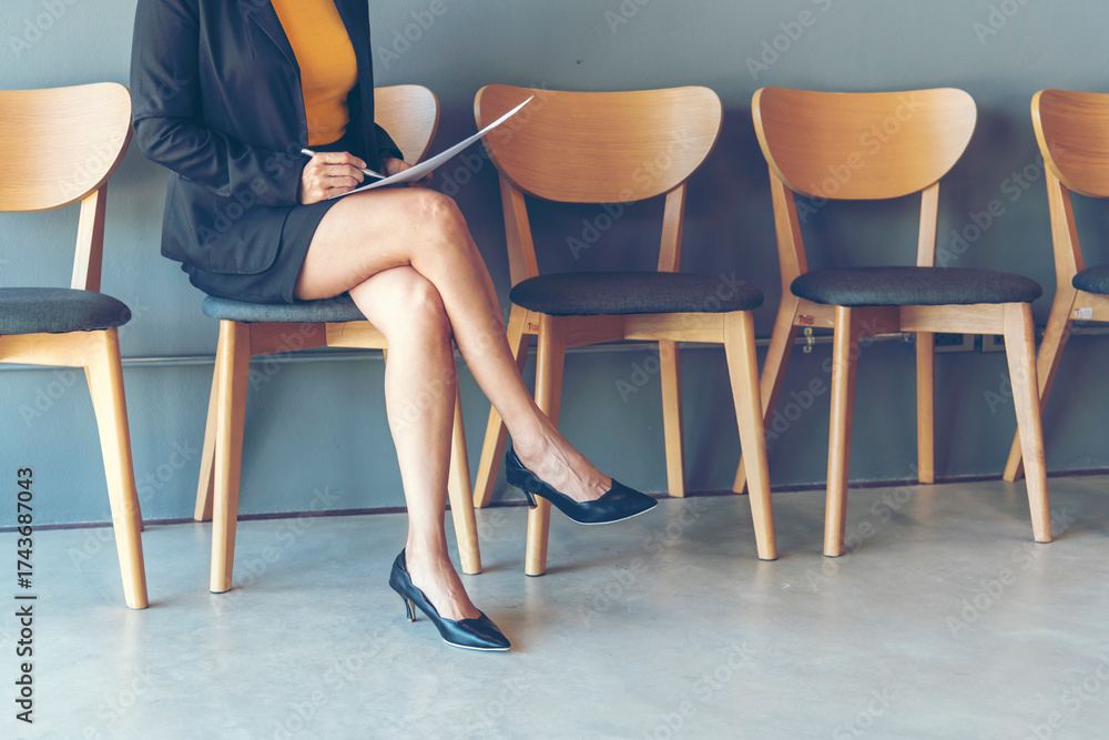 Job Hiring Interview Candidate prepare Questions Best Answers for Interviewing with Human Resource HR Manager. Confident Candidate in Office sitting waiting outside room for Jobs Interview
