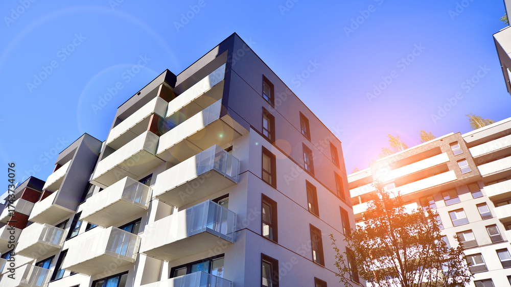 New modern block of flat, condo architecture. Residential apartment flat Luxury house complex. City real estate property,